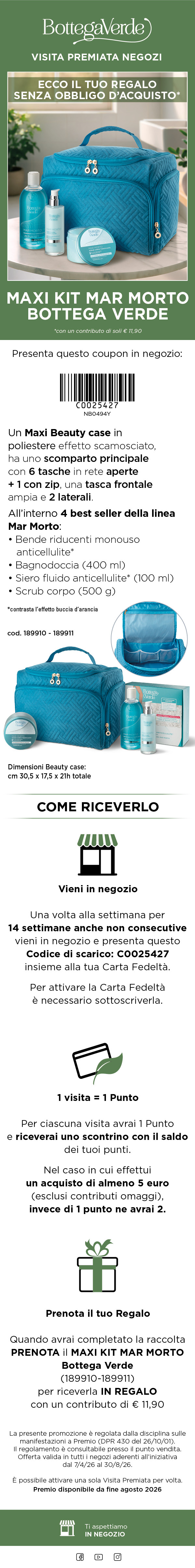 Un kit completo pensato per la tua routine corpo, con 4 best seller Mar Morto racchiusi in un maxi beauty case pratico e super capiente. Tuo con un contributo di soli 11,90 euro.