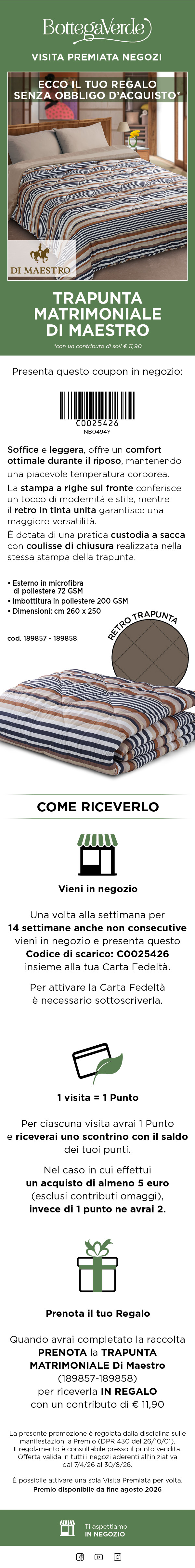 La presente promozione è regolata dalla disciplina sulle manifestazioni a Premio (DPR 430 del 26/10/01). Il regolamento è consultabile presso il punto vendita.